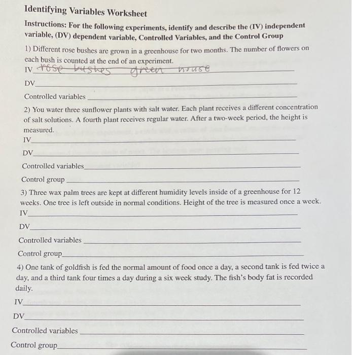 The number of flowers on each bush is counted at the end of an experiment. Identify the control group, and the independent and dependent variables in your description. I have found many ways to refer to the classification process as we work our way through the first unit on ecology. A good example of a. Each expression is made up of terms.